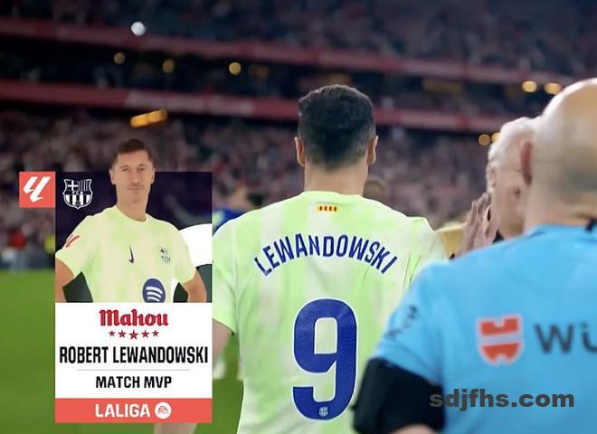 西甲第38轮,巴塞罗那客场3-0击败毕尔巴鄂竞技,此役上演梅开二度的巴萨前锋莱万当选西甲官方全场最佳球员。