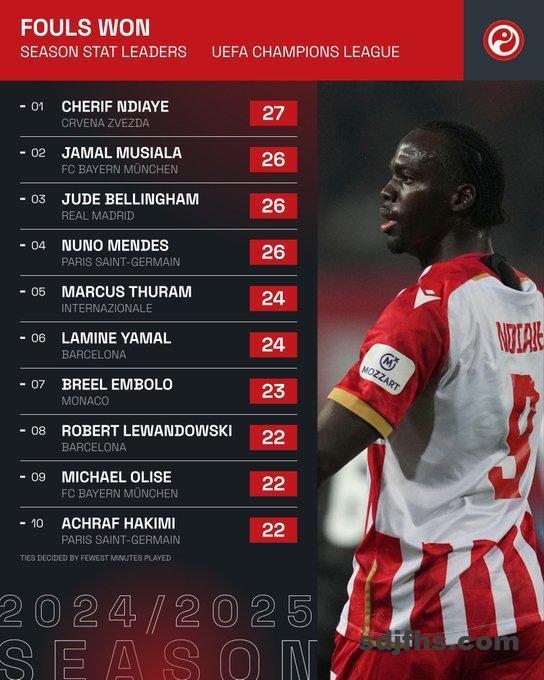 直播吧5月9日讯 Squawka统计了本赛季欧冠球员被侵犯的次数,并列出榜单,穆西亚拉、贝林厄姆、努诺-门德斯 […]