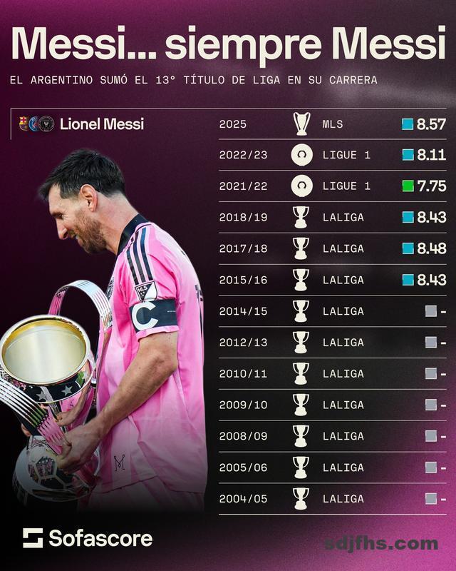 北京时间12月7日,美职联总决赛落幕,迈阿密国际3-1战胜温哥华白浪,夺得美职联总冠军。此役也为队内球星梅西带来了其职业生涯的第13座联赛冠军奖杯,其联赛夺冠纪录横跨西甲、法甲及美职联三大联赛。
