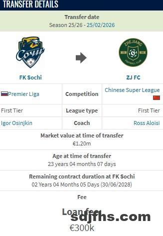 德转显示,浙江队新援瓜里拉帕的租借费为30万欧。