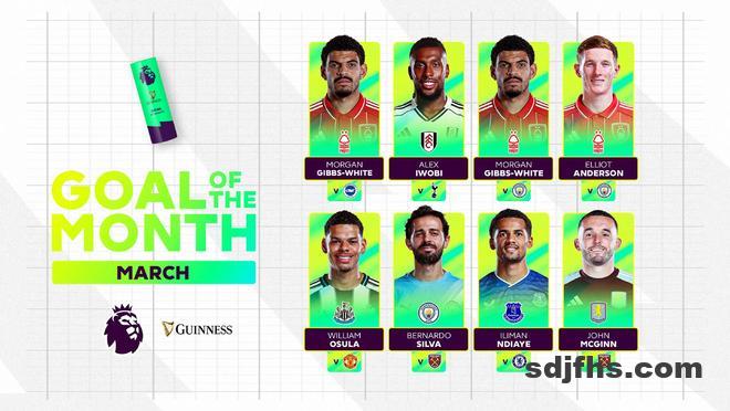 北京时间3月26日,英超官方公布了联赛3月最佳进球的8个候选者,诺丁汉森林3球上榜,伯纳多-席尔瓦对阵西汉姆联的进球以及奥苏拉对阵曼联的绝杀也获得提名。