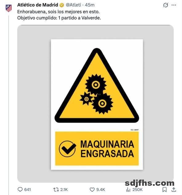 西班牙足协纪律委员会最终维持裁判比赛报告内容,对皇马中场巴尔韦德禁赛一场。马竞官方社媒表示:“恭喜,你们在这方面是最棒的,目标达成:罚巴尔韦德停赛1场。”
