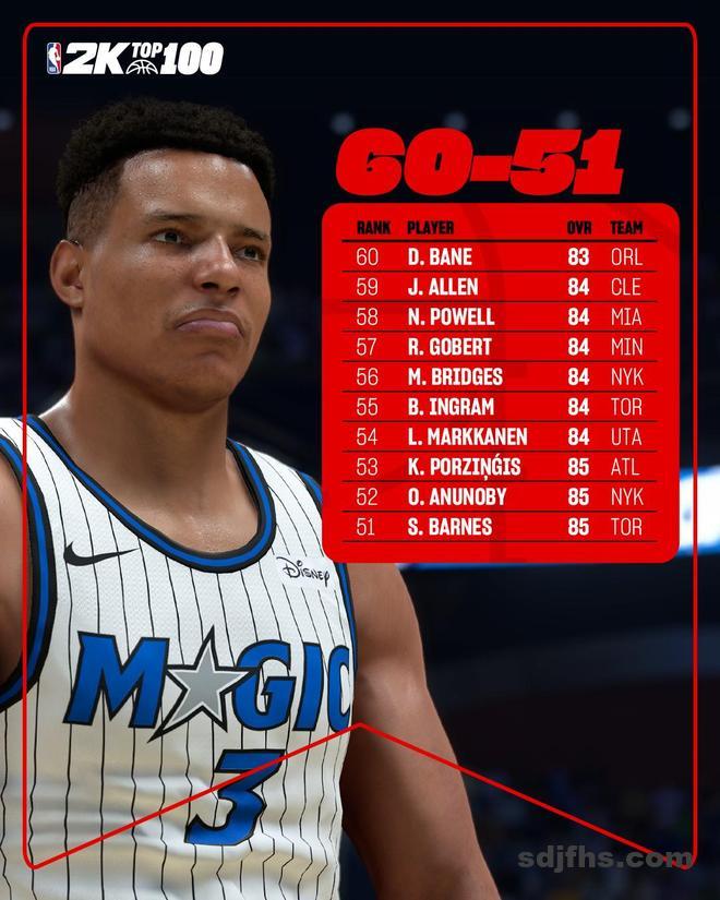 2k官方公布了球员评分51-60,其中,波尔津吉斯、戈贝尔、贝恩、鲍威尔在列。