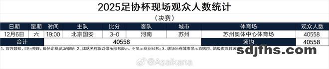 北京时间12月6日晚间,在足协杯决赛结束后,德国转会市场亚洲区管理员朱艺 统计了本赛季足协杯的观众人数。