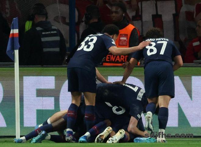 第23分钟,登贝莱也获得单刀机会。他突入禁区,推射远角,竟然踢偏了。第24分钟,克瓦拉茨赫利亚在禁区左侧内切推射远角,球进了!巴黎圣日耳曼扳平比分!7分钟后,登贝莱在禁区前沿内切远射,皮球被身前的帕夫洛维奇挡了出去。第33分钟,巴黎圣日耳曼反超比分。登贝莱开出角球,若昂-内维斯头球攻门,皮球钻入球门右下角!