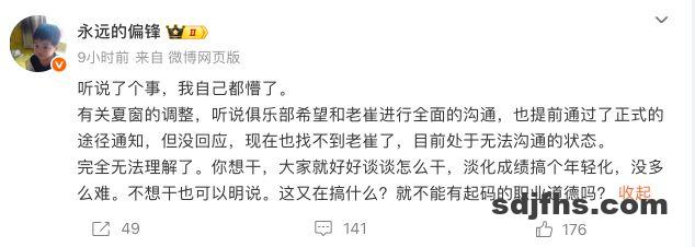 对此,陈永吐槽道:“听说这个事,我自己都懵了。完全无法理解了。你想干,大家就好好谈谈怎么干,淡化成绩搞个年轻化,没多么难。不想干也可以明说。这又在搞什么?就不能有起码的职业道德吗?”