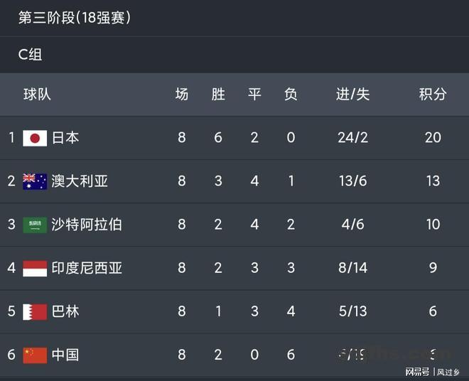 前8轮小组赛结束,国足排在小组倒数第1,6分,-13个净胜球。印尼则是9分,排在小组第4,-6个净胜球。巴林则是6分,小组第5,净胜球为-8。巴林的净胜球比国足多了5个。