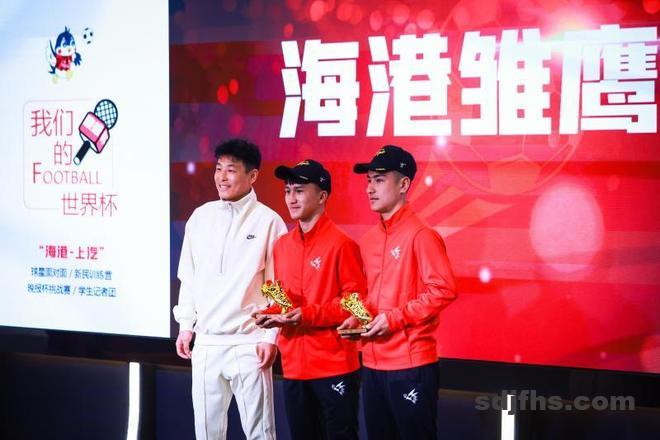 2023年2月26日,2023“海港-上汽”杯新民晚报中学生足球赛全国交流赛落下帷幕,初、高中组冠军分别被巴楚县第三中学队和喀什第六中学队获得。海港球星担任赛事形象大使,和参赛的新疆小球员合影。 海沙尔 摄