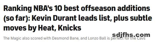 北京时间7月8日,NBA交易和签约市场正逐渐归于沉寂,知名美媒CBS评出了休赛期至今的10佳运作(后续可能会有变化),其中火箭两笔运作进入前5,换来杜兰特居首,从湖人挖走芬尼-史密斯排名第5。湖人签约艾顿没能上榜。让我们来看看这10笔最受好评的运作——