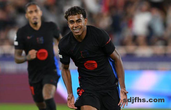 第53分钟,亚马尔禁区内带球内切,突然左脚兜射一脚世界波破门,随后模仿梅西庆祝,帮助巴萨1-0领先。