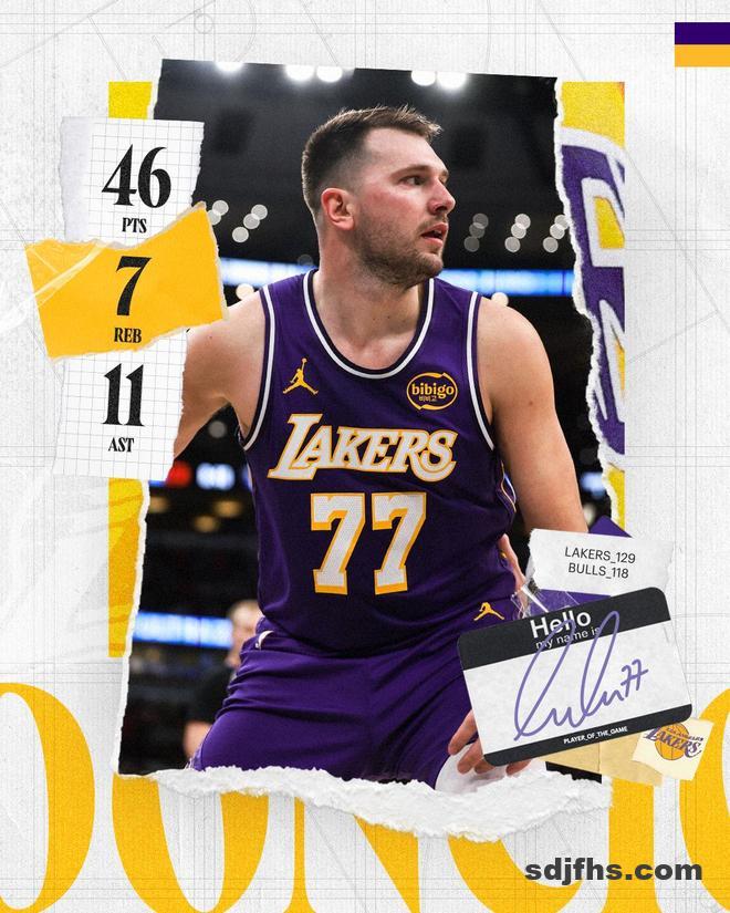 湖人队的东契奇得到46分、7个篮板和11次助攻,勒布朗得到24分和5个篮板,八村塁得到23分,斯马特得到12分。公牛队的怀特得到23分、5个篮板和6次助攻,多苏姆得到20分,吉迪得到19分、6个篮板和7次助攻,武切维奇得到18分、11个篮板和5次助攻,史密斯得到13分和7个篮板,布泽里斯得到11分、5个篮板和4次助攻。