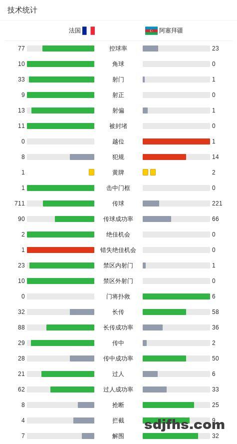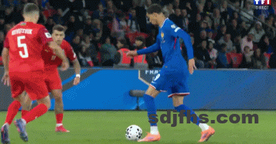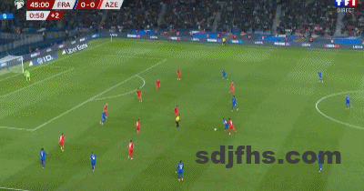 第45+2分钟,姆巴佩连过数人禁区低射远角破门,法国1-0阿塞拜疆