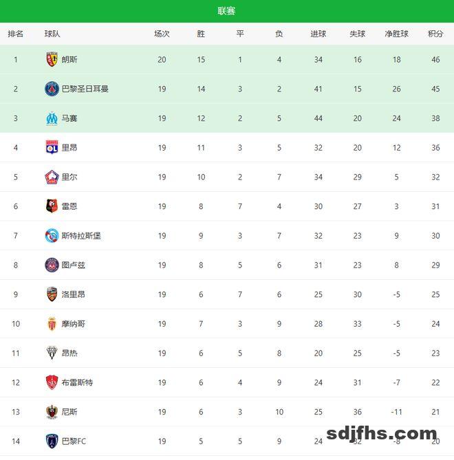 这样一来,朗斯在20轮过后取得15胜1平4负,积46分,反超巴黎圣日耳曼,暂时登顶积分榜。虽然朗斯的进球数仅34粒,远低于巴黎41球和马赛44球,但他们的防守效率极高仅丢16球,比大巴黎多一球,这是他们能时常登顶榜首的原因之一。