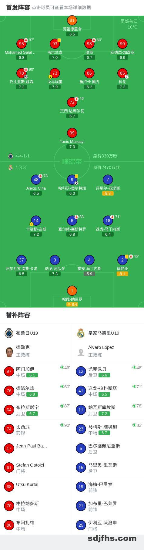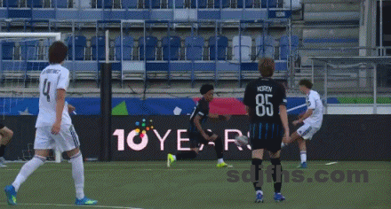 第64分钟,科伦下底横传,延森抢点破门,布鲁日U19 1-1皇马U19