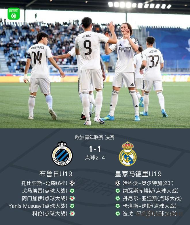 皇马点杀布鲁日夺得欧青联冠军,哈维-纳瓦罗两次扑点