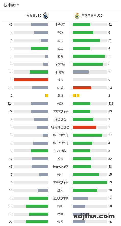 北京时间4月21日欧洲青年联赛 决赛,布鲁日U19 对阵皇家马德里U19。布鲁日U19 托比亚斯-延森破门。皇家马德里U19哈科沃-奥尔特加破门。最终比分布鲁日U19 3–5 皇家马德里U19。