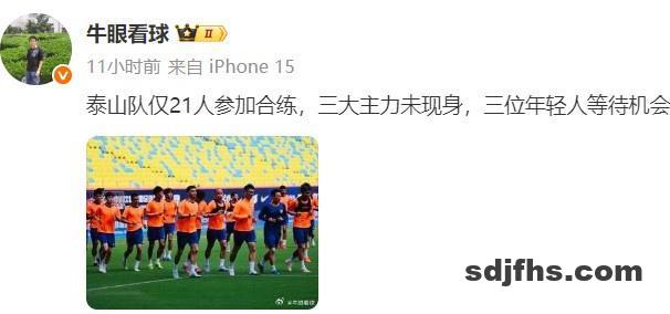 直播吧8月2日讯 记者“牛眼看球”发文透露泰山队赛前适应场地训练仅21人参加合练,三大主力未现身。
