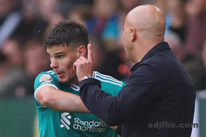 面对科尔科兹灾难级的上半场表现,主帅斯洛特在第38分钟就罕见地撤下这名新援左后卫,换上老成持重的罗伯逊。在下场时,斯洛特向这位新援做出了一定的解释,但年轻的科尔科兹显然不会开心。科尔科兹被换下的直接导火索是那次颇具争议的假摔。——吃到黄牌后,斯洛特担心他再冒失染红,于是果断换人。
