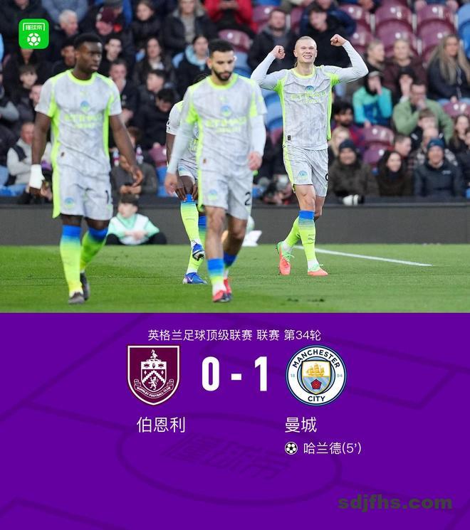 北京时间4月23日英格兰足球顶级联赛第34轮,伯恩利主场对阵曼城。上半场多库献助攻,哈兰德闪击。最终比分曼城1-0伯恩利登顶,伯恩利降级。