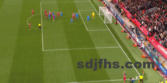 第4分钟,萨拉赫主罚任意球弹在罗伯逊身上弹进球门,利物浦1-0!