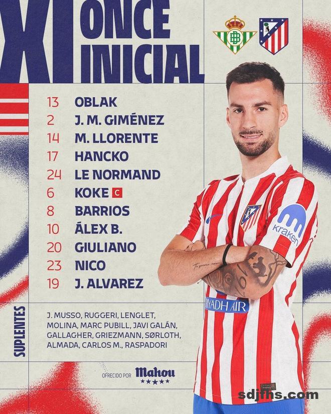 北京时间10月28日4点,西甲第10轮皇家贝蒂斯对阵马德里竞技,赛前公布首发名单。