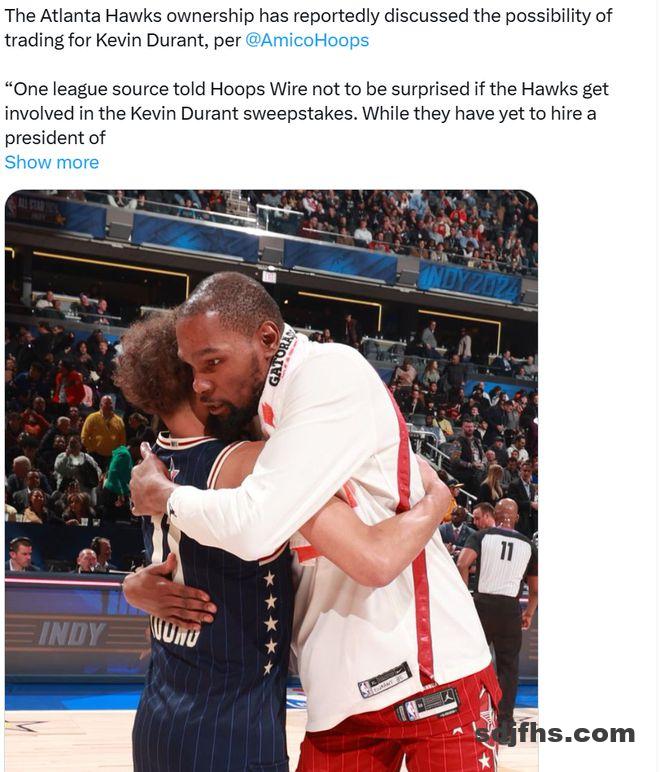 消息人士说:“如果老鹰队参与凯文·杜兰特的争夺战,不要感到意外。尽管他们尚未聘请篮球运营总裁,但球队管理层内部已经就杜兰特的情况进行了询问”。