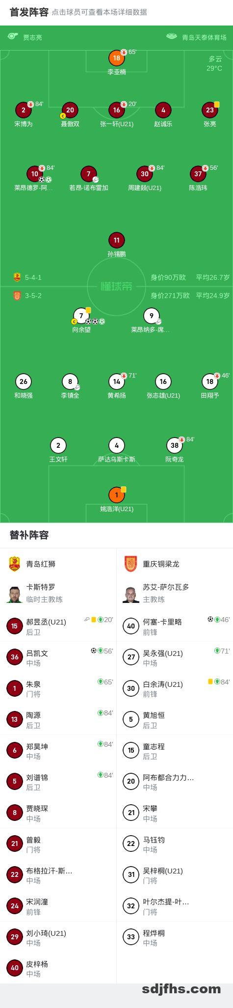 7月12日,中国甲级联赛第16轮,青岛红狮坐镇主场迎战重庆铜梁龙。比赛中,青岛红狮由莱昂德罗-阿尔维斯和吕凯文各入一球,其中莱昂德罗-阿尔维斯主罚点球命中;而重庆铜梁龙则凭借向余望的帽子戏法以及何塞-卡里略在补时阶段的进球完成逆转。最终,重庆铜梁龙以4比3战胜青岛红狮。