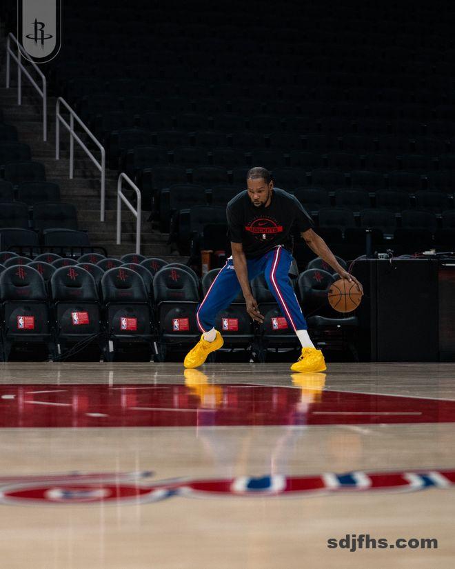 火箭队首发阵容:谢泼德、汤普森、杜兰特、史密斯、申京