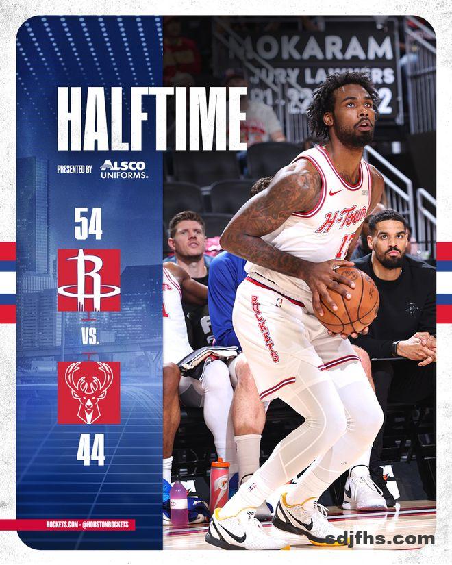 火箭队的谢泼德上半场得到15分,汤普森得到8分和8个篮板;雄鹿队的吉昂得到16分、6个篮板和5次助攻,南斯得到12分。