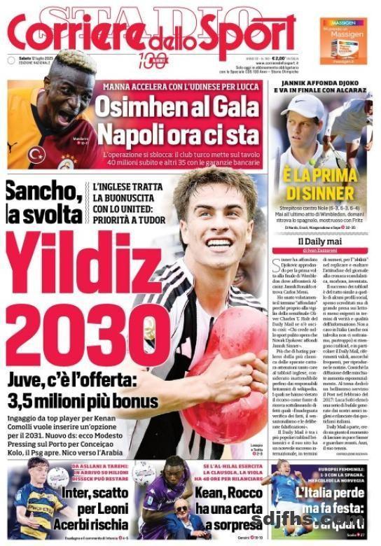 直播吧7月12日讯 据西媒《世界体育报》援引《罗马体育报》报道,巴萨和拜仁关注伊尔迪兹,尤文准备最高400万欧年薪续约合同。