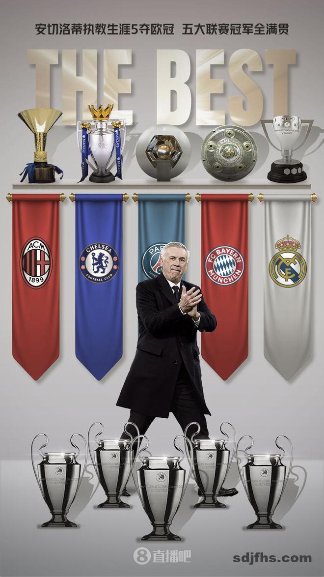 安切洛蒂现年65岁,意大利籍主帅。他执教生涯五夺欧冠,并且包揽五大联赛冠军,是足坛历史第一人。