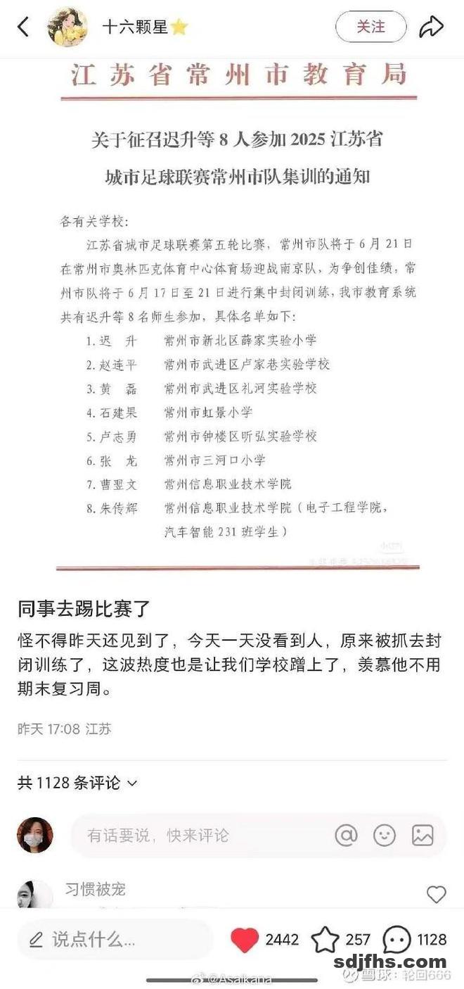 直播吧6月18日讯 针对“苏超常州队紧急摇人”的报道,媒体人朱艺在社媒进行了澄清,他表示其实黄紫昌一开始就已经在常州队的名单之中。