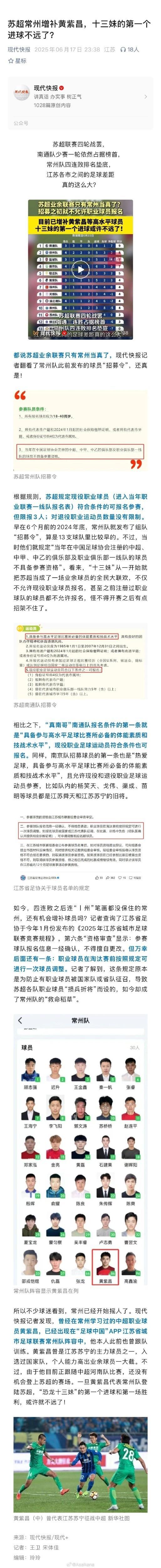 这两篇关于“苏超常州队紧急摇人”的消息都是错误的。江苏省城市足球联赛只有在进入淘汰赛才可以更换报名名单,不管是常州市教育局的征召文件里说的这些人,还是黄紫昌,都是一开始就在常州队名单里的。