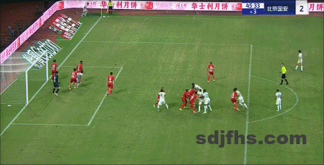 第13分钟,国安左路低平球传中,门前法比奥抢点被封堵。↓