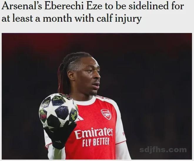gunnerblog在TA发文表示,埃泽将因为小腿伤势至少缺阵一个月。