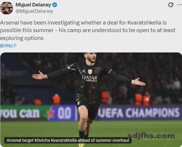 独立报记者MD消息,阿森纳正探索今夏收购克瓦拉茨赫利亚,并且这名球星的阵营对这个可能性持开放态度,但巴黎可能会采取强硬态度。