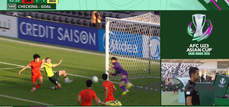 第43分钟,王钰栋左路任意球传入罚球区,波尔门前头球争顶,球弹在马杰科登米胸口后落在罚球点附近,彭啸跟上左脚爆射破门。彭啸打入本届U23亚洲杯中国队首球,1-0!中国队上半场唯一一次射门就取得了进球。