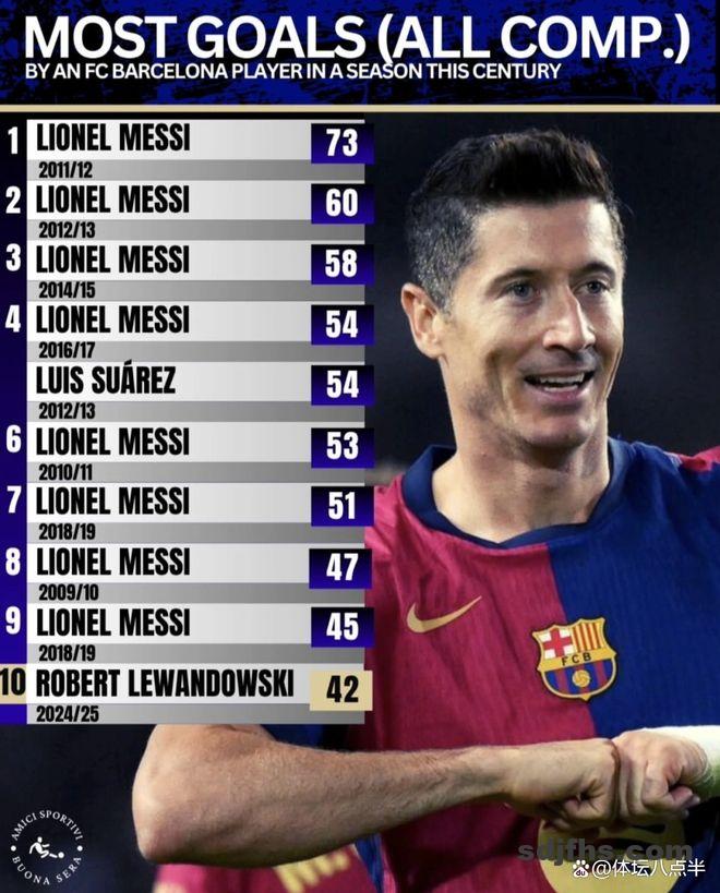 本榜单统计了21世纪巴塞罗那球员在单赛季所有赛事中的进球数以及进球+助攻综合表现,涵盖顶尖射手和关键进攻球员的高光赛季表现。