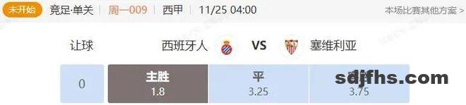 竞足 周一009 西甲 西班牙人VS塞维利亚