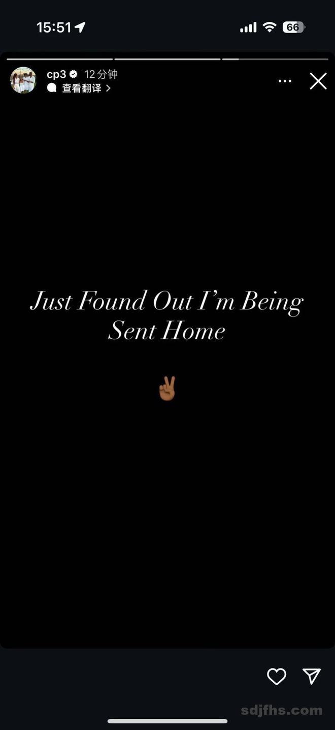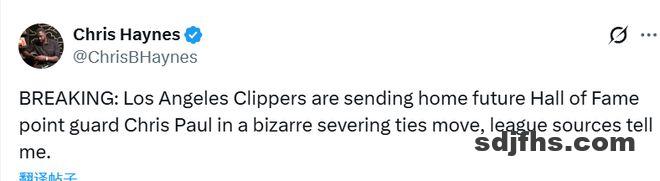 保罗几分钟之前社媒表示:“我刚被通知,我要被送回家了。”名记Haynes报道称,据联盟消息人士向我透露,洛杉矶快船队正以一种出人意料的解约方式,将未来名人堂级别的控卫克里斯-保罗送走。